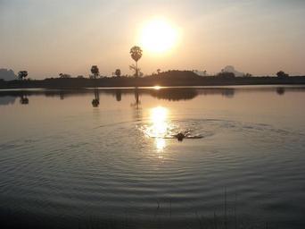 Keywords: dog water swim paddle thailand nature evening lake