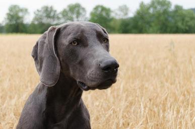 Keywords: dog weimaraner head animal snout pet animal portrait young dog hunting dog quadruped field wheat yellow hundeportrait