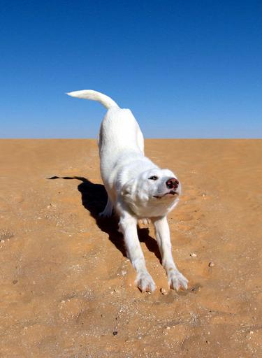 Keywords: dog white desert animal canine happy playful nature outdoors