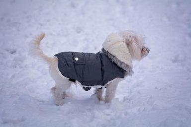 Keywords: dog young dog young white maltese dog coat dog clothing small sweet cute winter snow animal pet small dog