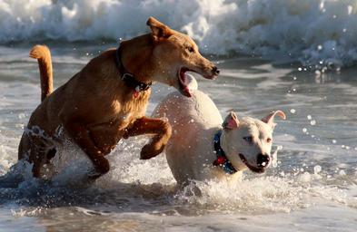 Keywords: dogs play fun romp sea ocean wave wet movement