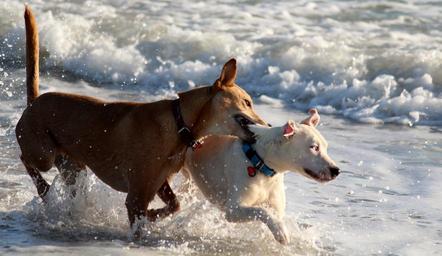 Keywords: dogs play fun romp sea ocean wave wet movement