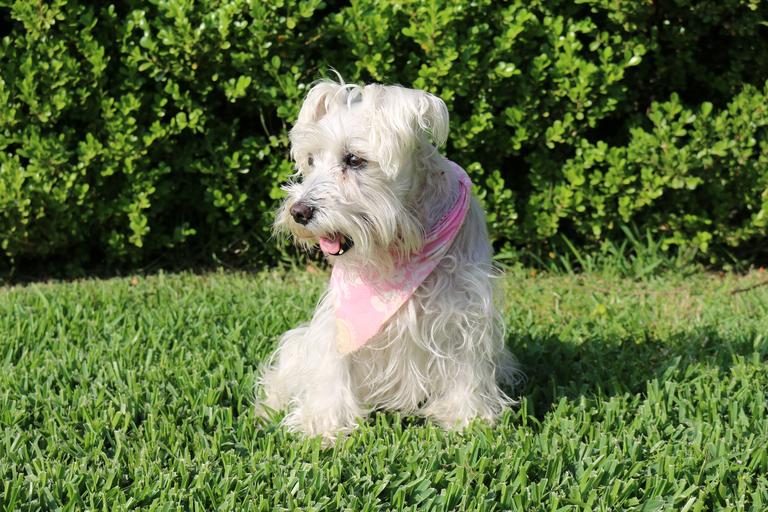 Keywords: dogs schnauzer pet dog breed german white fur female green grass