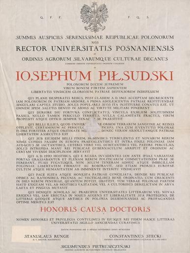 | Keywords: Doktorat Honoris Causa dla Jozefa Pilsudskiego od Uniwersytetu Poznanskiego.jpg paper accession number 53/296/0/176 place of creation Poznań cc-zero Józef Piłsudski in 1933 State Archive in Poznań Uploaded with VicuñaUploader Adam Mickiewicz University 1933 in Poznań |