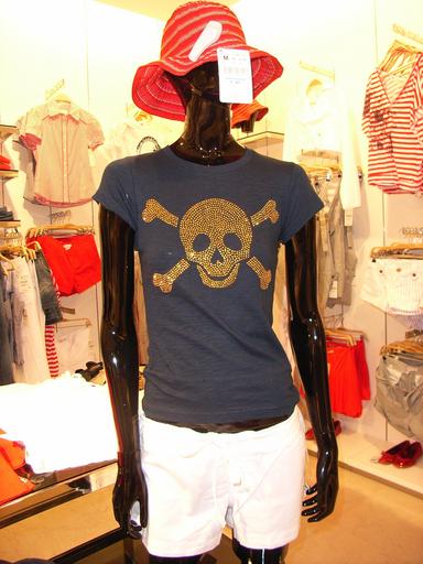 Keywords: doll display dummy dressed up window decoration clothing fashion skull and crossbones