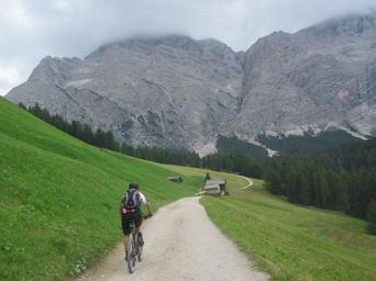 Keywords: dolomites mountains italy cyclists transalp exit forests away path green rock storm
