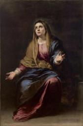 | Keywords: Dolorosa.jpg Este obra que muestra a la Virgen María como Dolorosa es una obra de acusado dramatismo en la que la Virgen aparece sentada de cuerpo entero y con sus brazos abiertos en actitud de ofrenda hacia Dios mientras que su vista está puesta en el Cielo Institution Museo de Bellas Artes Seville 1660 oil on canvas Size cm 107 166 http //www juntadeandalucia es/cultura/museos/MBASE/index jsp redirect S2_3_1_1 jsp idpieza 24 pagina 2 http //ceres mcu es/pages/Main accession number CE0123P PD-old-100 Paintings of Mater dolorosa in Spain 17th-century paintings of Mater dolorosa Virgin Mary by Bartolomé Esteban Murillo Paintings by Bartolomé Esteban Murillo in the Fine Arts Museum of Seville 17th-century paintings in the Fine Arts Museum of Seville American Colony Photo Department Matson Collection Females in art in three-quarter views Women's arms in art Baroque paintings in Spain Portrait paintings of sitting women Oil paintings of women 1660 paintings in Spain |
