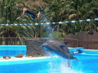 Keywords: dolphins show water fly animal stunt action