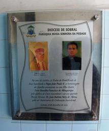 Keywords: Dom Benedito Bispo Itapipoca.JPG Placa na Paróquia de nossa senhora da Piedade com homenagem ao bispo de Itapipoca Dom Benedito Francisco de Albuquerque own Almanaque Lusofonista 2013 Coreaú