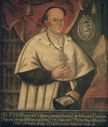 | Keywords: Dom Frei Manuel de Santa Catarina.png pt O Ex mo e R mo S r D Fr Manoel de S ta Catharina Carmelita Descalço Lente de Filozofia e Theologia Prior no Collegio de Braga sua Patria B o de Cochim em 1779 e Arcebispo de Goa em 1784 onde tomou o Pallio a 21 de Novembro do mesmo anno c 1780s http //www2 cm-evora pt/conventoremedios/Atas/comunica C3 A7 C3 B5es/loureiro pdf Dr José João Loureiro - As Galerias dos Prelados Carmelitas Descalços e seu Pintor Atas do Ciclo de Conferências sobre Convento de Nossa Senhora dos Remédios e a Ordem do Carmo em Portugal e no Brasil associado à Exposição Convento de Nossa Senhora dos Remédios Convento dos Remédios Évora 22 23 e 24 de Maio de 2013 Creator Estanislau Luís António other versions PD-old-100 Uploaded with UploadWizard 18th-century portrait paintings of bishops 18th-century portrait paintings of standing men at half length 18th-century portraits paintings in Portugal Manuel de Santa Catarina Catholic choir dresses Estanislau Luís António |