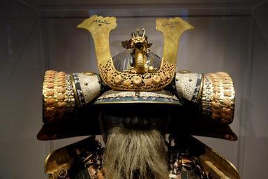| Keywords: Domaru Armor with Bright Red Lacing, Helmet perhaps signed Yoshitoshi, view 2, Japan, late 18th to early 19th century, lacquered iron, leather, silk, cotton, gilt copper, horsehair - Chazen Museum of Art - DSC01728.JPG en Exhibit in the Chazen Museum of Art University of Wisconsin-Madison Madison Wisconsin USA This artwork is old enough so that it is in the public domain Photography was permitted in the museum without restriction 2013-07-21 12 45 11 own Daderot cc-zero Art of Japan in the Chazen Museum of Art Uploaded with UploadWizard Dou dō maru |