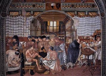 | Keywords: Domenico di Bartolo - Care of the Sick - WGA06417.jpg Artwork Creator Domenico di Bartolo between 1441 1442 Fresco Institution Spedale di Santa Maria della Scala Siena object history credit line accession number WGA link 6417 http //www wga hu/art/d/domenico/bartolo/speda2 jpg http //www wga hu/html/d/domenico/bartolo/speda2 html PD-old-100 painting other Italian 1401-1450 Domenico di Bartolo Pellegrinaio di Santa Maria della Scala Siena Medicine in art 1440s frescos in Italy WGA form painting WGA type other WGA School Italian WGA time period 1401-1450 1440s paintings from Italy History of medicine in Italy |