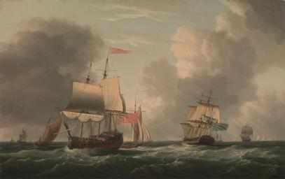 | Keywords: Dominic Serres - An English Two-Decker Lying Hove to, with Other Ships and Vessels in a Fresh Breeze - Google Art Project.jpg No inscription Inscription _Signed_and_Dated Signed and dated in black on wood plank lower right D Serras 1770 Not on View Oil on panel clouds wind men waves waves water breeze fleet sea ships flags special url_id zAFjV3VoPKFudw PD-old-100-1923 1793 Dominic Serres Google Art Project works by Dominic Serres 18th-century paintings in the Yale Center for British Art 18th-century sailing ships in paintings Ships of the United Kingdom in art |