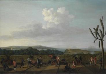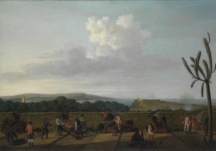 | Keywords: Dominic Serres the Elder - The Capture of Havana, 1762, the English Battery before Morro Castle.jpg A depiction of an episode from the last major operation of the Seven Years War 1756-63 It was part of England's offensive against Spain when she entered the war in support of France late in 1761 The British Government's response was immediately to plan large offensive amphibious operations against Spanish overseas possessions particularly Havana the capital of the western dominions and Manila the capital of the eastern Havana needed large forces for its capture and early in 1762 ships and troops were dispatched under Admiral Sir George Pocock and General the Earl of Albemarle The force which descended on Cuba consisted of 22 ships of the line four 50-gun ships three 40-gunners a dozen frigates and a dozen sloops and bomb vessels In addition there were troopships storeships and hospital ships Pocock took this great fleet of about 180 sail through the dangerous Old Bahama Strait from Jamaica to take Havana by surprise Havana on Cuba's north coast was guarded by the elevated Morro Castle which commanded both the entrance to its fine harbour immediately to the west and the town on the west side of the bay The castle was built on rock with massive rock-cut ditches defending it to landward It was however overlooked by the high ground of the Cabana ridge Los Cavannos to the south-east Despite Spanish defence of the ridge the British managed to take it and set up a battery there from which to bombard the castle at a distance This painting shows the inside of the battery made from a timber platform with a parapet of fascines The gunners wear blue coats The Morro Castle can be seen in the distance on the right with the bell-tower of Havana cathedral on the left The main harbour lies below hidden by the trees in the centre ca 1775 oil on canvas cm 84 122 Institution National Maritime Museum object history credit line On loan to the National Maritime Museum Greenwich London from a private lender accession number BHC0410 http //www nmm ac uk/collections/explore/object cfm ID BHC0410 National Maritime Museum BHC0410 PD-old-100 Dominic Serres Paintings of Battle of Havana 1775 paintings Cuba in the 1760s Paintings in the National Maritime Museum London Castillo de los Tres Reyes del Morro |