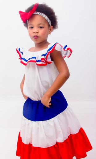 Keywords: dominican girl dress dominican republic colors red with blue blue with red smiling happy
