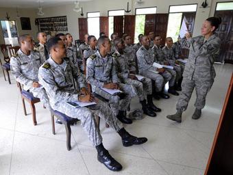 | Keywords: Dominican military training 100921-N-9643W-125 (5014732671).jpg U S Air Force Tech Sgt Yvonne Martino reveals the results of an ice-breaker exercise to cadets from the Dominican Republic naval academy during a senior leadership subject matter expert exchange in Santo Domingo Dominican Republic Sept 21 2010 Martino is deployed along with high speed vessel Swift HSV-2 in support of Southern Partnership Station 2010 which is designed to promote information-sharing with navies coast guards and civilian services throughout the U S Southern Command area of responsibility DoD photo by Mass Communication Specialist 1st Class Kim Williams U S Navy/Released https //www flickr com/photos/39955793 N07/5014732671/ 100921-N-9643W-125 2010-09-21 13 39 https //www flickr com/people/39955793 N07 U S Department of Defense Current Photos PD-USGov-Military-Navy U S Department of Defense Current Photos https //flickr com/photos/39955793 N07/5014732671 2016-11-27 19 17 19 United States Government Work Files from the U S Department of Defense Flickr stream United States Navy images from 27 de Febrero Naval Base Outreach United States Navy Files from Flickr with bad file names Files uploaded by Reguyla Southern Partnership Station 2010 of the Dominican Republik |