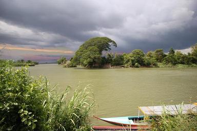 Keywords: Don det nature.jpg en don det heavy sky clouds and sunlight Mekong river green landscape tree and boat 2015-06-13 08 32 48 own Basilemorin other versions cc-zero Uploaded with UploadWizard Mekong in Laos