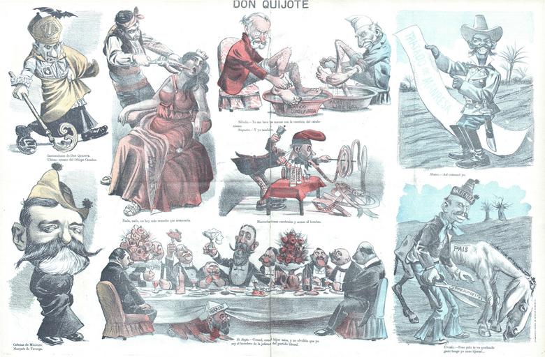 Keywords: Don Quijote, 6 de diciembre de 1901.jpg es Caricatura 1901-12-06 cite journal Don Quijote X 10 2-3 http //hemerotecadigital bne es/issue vm id 0003815641 page 2 1901-12-6 2254-5581 Creator Manuel Tovar Siles «D HermĂłgenes» PD-Scan PD-old-auto-1923 1935 other versions Caricatures by Manuel Tovar in Don Quijote 1901 cartoons Francisco Silvela caricatures PrĂĄxedes Mateo Sagasta caricatures Segismundo Moret caricatures Salvador Casañas i PagĂšs Antonio Maceo Grajales Catalan nationalism in caricature JuliĂĄn GarcĂa-San Miguel Ăngel UrzĂĄiz Allegory of Hispania Caricatures of personifications of Spain |