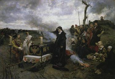 Keywords: Doña Juana "la Loca" (Pradilla).jpg Artwork Q3038406 Creator Francisco Pradilla y Ortiz langswitch Juana la Loca velando el cadáver de Felipe el Hermoso Juana the Mad Holding Vigil over the Coffin of Her Late Husband Philip the Handsome 1877 oil cm 340 500 Institution Prado http //www museodelprado es/imagen/alta_resolucion/P04584 jpg other versions <gallery>File Juana la Loca de Pradilla jpg</gallery> Assessments 1 PD-old-100 16th-century way of life in painting Francisco Pradilla y Ortiz 19th-century paintings in the Prado Museum Joanna of Castile Philip I of Castile 1877 paintings 1506 deaths 19th-century history paintings 19th-century oil on canvas paintings in Spain Coffins in art Death in Spain People with fire in art Mourning in art History paintings in the Prado Museum Death in paintings People with candles in art Burning candles in art