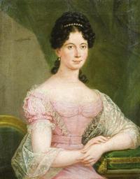 | Keywords: Donát Female Portrait 1820.jpg Artwork Creator János Donát 1820 Oil on canvas Size cm 62 76 Unidentified private collection object history credit line bottom left Donát pinxit 1820 accession number http //axioart com/ axioart com http //axioart com/index php op live_item id 310043 Info http //axioart com/images/live_images/original/1808/177 jpg Pic PD-old-100 DEFAULTSORT 1820; unknown woman Portrait paintings by János Donát 19th-century portrait paintings in unidentified private collections 19th-century portrait paintings of unidentified women 1820s dresses 1820 oil on canvas paintings Portrait 1820 portrait paintings 19th-century oil portraits of sitting women at half length Cushions in portrait paintings Females with pink dresses in art Females with hair with pearl jewellery in art Lace shawls in art Portraits with shawls |