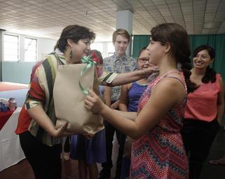 | Keywords: indoor people Elda Gladis de Ortiz (izq.) recibe un obsequio de miembros de la Delegación Empowering the Americas durante la visita a los niños del Hogar San Vicente de Pául Elda Gladis de Ortiz (izq.) recibe un obsequio de miembros de la Delegación Empowering the Americas durante la visita a los niños del Hogar San Vicente de Pául | ||||