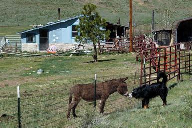 Keywords: donkey bernese mountain dog canine landscape nature animal