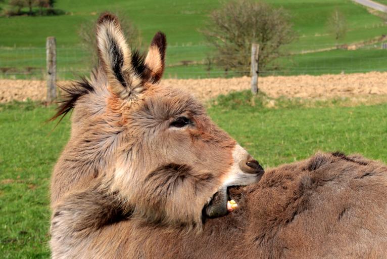 Keywords: donkey domestic donkey equus asinus asinus animal stand brown last animal perissodactyla tooth clash itch on pasture nature