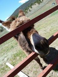 Keywords: donkey fence face head mammal animal farm rural agriculture livestock ass burro nose farmyard domestic domesticated cute mule pasture farming country outdoors pet