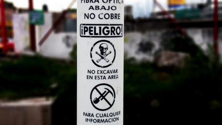 Keywords: DoNotDig Warning.JPG es Poste de delimitación de fibra óptica junto a una línea ferroviaria propiedad de es Ferromex 2013-07-06 18 48 57 own House cc-zero Uploaded with UploadWizard Warning road signs