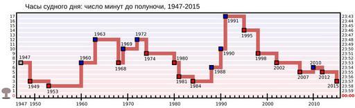 | Keywords: Doomsday Clock graph ru.svg Г афик показывает изменение в емени Часов судного дня п оекта жу нала Bulletin of the Atomic Scientists Слева числами обозначено в емя до «полуночи» яде ной войны в минутах В столбце сп ава указано полное в емя ебольшой «яде ный г иб» показывает в каком нап авлении лежит негативный исход own Fastfission; translated to Russian by Jeron 2007-01-17; 2008-06-21 translation date Use of this work which I have created is allowed under the terms of the CC-BY-SA license see below Credit must be given to Wikimedia Commons You can contact me if you would like to negotiate other licensing terms which I am generally happy to do Those who wish to use this in the course of teaching may do so without any limitations Original svg image in English translated to Spanish Doomsday Clock |