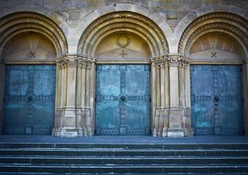 Keywords: door church old historically facade metal house of worship wrought iron ornament düsseldorf
