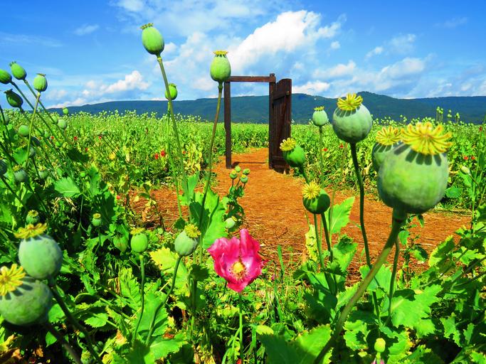 MAKE A MEME View Large Image door field away landscape nature meadow clouds sky fields lane summer poppy encapsulate poppy capsule