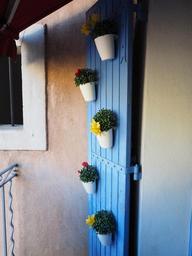 Keywords: door flower pots ornament wooden door plant flowers decor book colorful