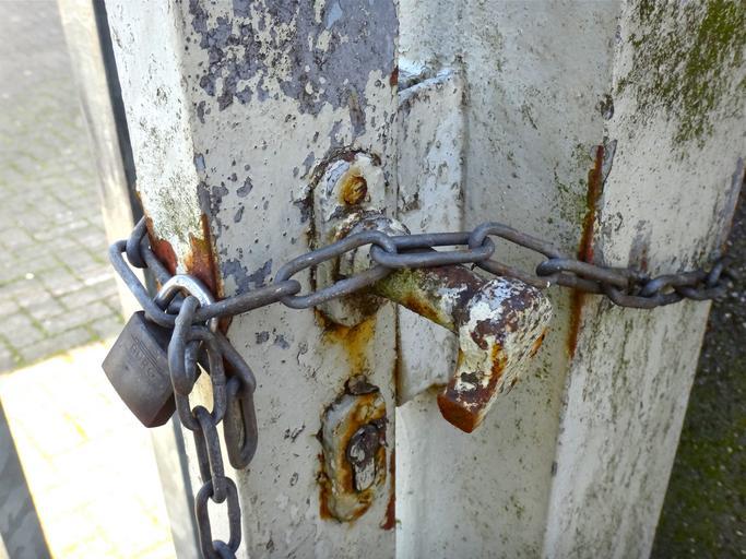 Keywords: door goal castle chain close metal gate weathered used old