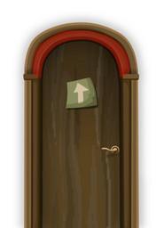 Keywords: door round arch entrance entry doorway brown wood wooden door frame exterior residential rustic up arrow enter