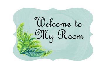 Keywords: door sign romantic welcome room welcome to my room blue green leaf open door entrance symbol open sign home house enter hanging sign label interior opening door