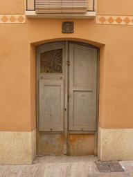 Keywords: door wood wooden decorative entrance doorway spain half round half-timbered frame special old door worn rare panels architecture white