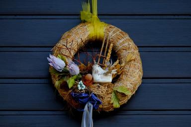 Keywords: door wreath wreath decoration art decorated türdekoration beautiful creative door input creativity nature colorful background color floristry mood decorative deco arrangement straw ornament