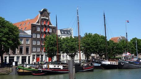 Keywords: dordrecht warehouse city cityscape netherlands holland port historical center ship canal vessel boats
