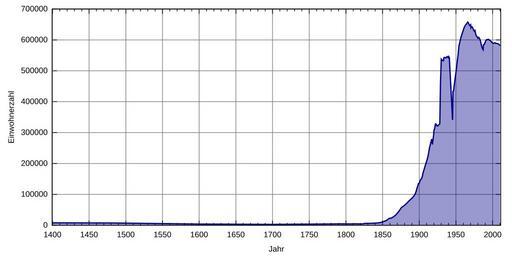 | Keywords: Dortmund population.svg en Dortmund population statistics since 1400 de Einwohnerentwicklung von Dortmund seit 1400 own ; data from de Einwohnerentwicklung_von_Dortmund Gorgo 2011-03-06 Created with Gnuplot /usr/bin/gnuplot gnuplot 4 2 / Ubuntu 8 10 input set timefmt d m Y set datafile separator ; output unset key set style data lines set style fill transparent solid 0 4 set grid set xdata time set xlabel 'Jahr' set xrange '01 01 1400' '31 12 2010' set xtics 1576800000 set mxtics 5 set format x ' Y' set ylabel 'Einwohnerzahl' set ytics 100000 set format y ' 0f' set term svg size 800 400 font Arial 10 set output 'dortmund_population svg' plot '-' using 1 2 with filledcurves below x1 lt rgb 'dark-blue' lw 2 30 06 1300;10000 30 06 1380;8000 30 06 1480;7500 30 06 1600;4000 30 06 1700;3000 30 06 1793;4500 30 06 1809;4394 30 06 1812;4828 01 12 1816;4465 01 12 1819;4453 01 12 1822;4534 01 12 1825;5962 01 12 1828;6167 01 12 1831;6121 03 12 1834;6360 03 12 1837;6861 03 12 1840;7205 03 12 1843;7620 03 12 1846;8893 03 12 1849;10532 03 12 1852;13546 03 12 1855;16664 03 12 1858;22115 03 12 1861;23372 03 12 1864;27356 03 12 1867;33453 01 12 1871;44420 01 12 1875;57742 01 12 1880;66544 01 12 1885;78435 01 12 1890;89663 31 12 1891;92740 31 12 1892;96020 31 12 1893;99450 31 12 1894;104340 02 12 1895;111232 31 12 1896;120410 31 12 1897;128120 31 12 1898;135260 31 12 1899;136110 01 12 1900;142733 31 12 1901;148796 31 12 1902;150420 31 12 1903;156677 31 12 1904;167570 01 12 1905;175577 31 12 1906;183851 31 12 1907;191581 31 12 1908;199311 31 12 1909;207041 01 12 1910;214226 31 12 1911;224399 31 12 1912;237515 31 12 1913;250778 01 12 1916;279030 05 12 1917;261581 08 10 1919;295026 31 12 1919;305900 31 12 1920;313752 31 12 1921;327865 31 12 1922;327808 31 12 1923;321630 31 12 1924;322607 16 06 1925;321743 31 12 1925;324280 31 12 1926;325937 31 12 1927;328707 31 12 1928;465196 31 12 1929;537891 31 12 1930;535087 31 12 1931;533333 31 12 1932;532521 16 06 1933;540875 31 12 1933;543413 31 12 1934;542935 31 12 1935;541799 31 12 1936;543942 31 12 1937;546076 31 12 1938;543700 17 05 1939;542261 31 12 1939;546300 31 12 1940;542200 30 04 1945;341000 31 12 1945;433156 29 10 1946;436491 31 12 1947;459731 13 09 1950;507349 31 12 1951;534639 31 12 1952;554498 31 12 1953;579525 25 09 1956;607885 06 06 1961;641480 31 12 1961;643921 31 12 1962;648085 31 12 1963;651138 31 12 1964;653833 31 12 1965;657804 31 12 1966;655244 31 12 1967;648912 31 12 1968;645844 31 12 1969;649006 27 05 1970;639634 31 12 1970;642680 31 12 1971;642396 31 12 1972;637862 31 12 1973;632317 31 12 1974;628198 31 12 1975;630609 31 12 1976;617590 31 12 1977;612769 31 12 1978;609954 31 12 1979;605418 31 12 1980;608297 31 12 1981;605418 31 12 1982;599521 31 12 1983;589955 31 12 1984;579697 31 12 1985;572094 31 12 1986;568164 25 05 1987;584089 31 12 1987;583793 31 12 1988;587328 31 12 1989;594058 31 12 1990;599055 31 12 1991;601007 31 12 1992;600669 31 12 1993;601966 31 12 1994;600918 31 12 1995;598840 31 12 1996;597024 31 12 1997;594866 31 12 1998;591733 31 12 1999;590213 31 12 2000;588994 31 12 2001;589240 31 12 2002;590831 31 12 2003;589661 31 12 2004;588680 31 12 2005;588168 31 12 2006;587624 31 12 2007;586909 31 12 2008;584412 31 12 2009;581308 31 12 2010;576704 31 12 2011;578126 31 12 2012;571403 e Cc-zero Temporal population graphs of North Rhine-Westphalia Dortmund |