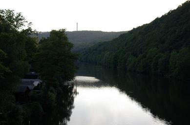Keywords: Dortmund-Syburg Ruhr 003.JPG Ruhr in Dortmund-Syburg kurz vor der Mündung in den Hengsteysee im Hintergrund der Richtfunkturm der RWE des Koepchenwerks own Janericloebe 2010-07 Ruhr at Dortmund