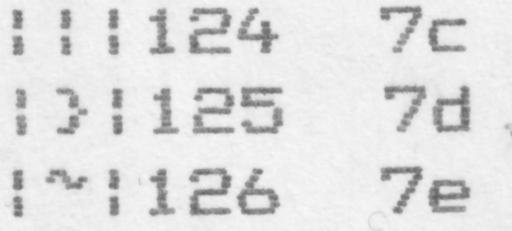 | Keywords: Dot printer ASCII0x7C+.png This sample of dot printer output also features a now obsolete ASCII typeface also found somewhere in text mode U+007C is rendered as ¦ and U+007E ~ is raised own 2012-02-10 Incnis Mrsi <span class signature-talk >talk</span> public domain File Dot printer ASCII png full ASCII chart Output of dot matrix printers ASCII Vertical bars Tildes |