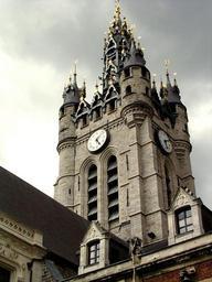 Keywords: douai france palace building structure architecture landmark clock sky clouds spires ornate outside