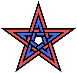| Keywords: Double-interlaced-pentagram.svg Two mutually interlaced concentric pentagrams Self-made graphic own 2010 AnonMoos 2 component links Pentagrams Decorative knots 20 crossing number knots and links Outline knots and links Generated by PostScript |