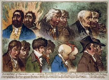 | Keywords: Doublures of characters.jpg DoublĂ»res of Characters; ”or ”striking Resemblances in Phisiognomy “ If you would know Mens Hearts look in their Faces - Lavater Bust portraits of seven leaders of the Opposition each with his almost identical double arranged in two rows with numbers referring to notes below the title The first pair are Fox and Satan a snake round his neck; behind them are flames 1 print engraving J Gillray inv fec cf P P - NE55 L7A3 vol no 9261 Forms part of British Cartoon Prints Collection Library of Congress This record contains unverified data from caption card I The Patron of Liberty - The Arch Fiend Charles James Fox II A Friend to his Country - Judas selling his Master Richard Brinsley Sheridan III Character of High Birth - Silenus debauching The Duke of Norfolk IV A FiniĹżh ™d Patriot - The loweĹżt Spirit of Hell George Tierney V Arbiter Elegantiarum - Sixteen-string Jack Sir Francis Burdett Bt VI Strong Sense - A Baboon The Earl of Derby VII A Pillar of the State - A Newmarket Jockey The Duke of Bedford Library of Congress Prints Photographs Division LC-USZC2-546 color film copy slide http //memory loc gov/master/pnp/cph/3b40000/3b48000/3b48400/3b48447u tif archival TIFF version 4 MB converted to JPEG with the GIMP 2 4 5 image quality 88 1798 creator James Gillray No known restriction on publication Image Doublures of character james gillray jpg LOC-image cph 3b48447 PD-old-100 James Gillray Caricatures of politicians of the United Kingdom Queues hair fashion Charles James Fox 1798 in Great Britain Francis Burdett House of Howard Richard Brinsley Sheridan Physiognomy |
