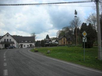 Keywords: Doubrava zentrum.jpg cs Doubrava Aš okres Cheb; náves a hlavní komunikace ve směru na Aš de Zentrum von Doubrava mit Gaststätte own Straktur 2010-05-09 Doubrava Aš