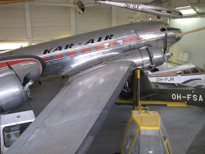 | Keywords: Douglas DC-3A OH-VKB 2.JPG  en Douglas DC-3A-214 in Finnish Aviation Museum Former SE-BAC Falken this aircraft served with the Swedish ABA company between 1937-1948 later with SAS 1948-1953 with Airtaco Ab 1953-1954 before purchased by Veljekset Karhumäki Oy and registered in Finland as OH-VKB Used as Kar-Air passenger plane 1954-1973 and later for geological survey until 1979 Last flight in 1987 c/n 1975 fi Douglas DC-3A-214 Suomen ilmailumuseossa Entinen SE-BAC Falken tämä lentokone oli ruotsalaisella ABA-yhtiöllä 1937-1948 SAS lla 1948-1953 ja Airtaco Ab lla 1953-1954 ennen myymistä Veljekset Karhumäki Oy lle 1954 Käytetty Kar-Airin matkustajakoneena 1954-1973 ja malminetsintäkoneena vuoteen 1973 Viimeinen lento 1987 sarjanumero 1975 Douglas DC-3 OH-VKB Kar-Air Static museum display Photograph 2010-11-13 MKFI own OH-VKB aircraft Aircraft at the Finnish Aviation Museum Unpainted aircraft 2010 in Vantaa November 2010 in Finland Files by User MKFI Taken with Canon PowerShot SX10 IS |