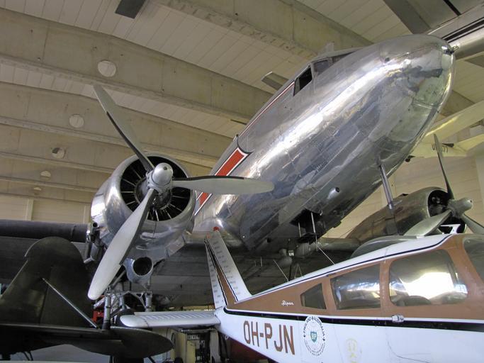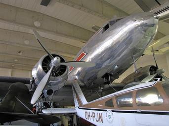 | Keywords: Douglas DC-3A OH-VKB 3.JPG  en Douglas DC-3A-214 in Finnish Aviation Museum Former SE-BAC Falken this aircraft served with the Swedish ABA company between 1937-1948 later with SAS 1948-1953 with Airtaco Ab 1953-1954 before purchased by Veljekset Karhumäki Oy and registered in Finland as OH-VKB Used as Kar-Air passenger plane 1954-1973 and later for geological survey until 1979 Last flight in 1987 c/n 1975 fi Douglas DC-3A-214 Suomen ilmailumuseossa Entinen SE-BAC Falken tämä lentokone oli ruotsalaisella ABA-yhtiöllä 1937-1948 SAS lla 1948-1953 ja Airtaco Ab lla 1953-1954 ennen myymistä Veljekset Karhumäki Oy lle 1954 Käytetty Kar-Airin matkustajakoneena 1954-1973 ja malminetsintäkoneena vuoteen 1973 Viimeinen lento 1987 sarjanumero 1975 Douglas DC-3 OH-VKB Kar-Air Static museum display Photograph 2010-11-13 MKFI own OH-VKB aircraft Aircraft at the Finnish Aviation Museum Unpainted aircraft 2010 in Vantaa November 2010 in Finland Files by User MKFI Taken with Canon PowerShot SX10 IS |