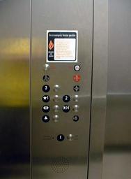 | Keywords: Dover elevator passenger controls (3 floors).jpg Text above controls reads the following Turn fire switch to off position Press and hold door close button to close doors Press desired floor button Press and hold door open button to open doors Press call cancel button to cancel call Turn key off to allow automatic return to initiating landing Turn key to hold to hold elevator at floor Text to left of phone icon reads Blinking indicates call is answered - help is on the way Elevator buttons |