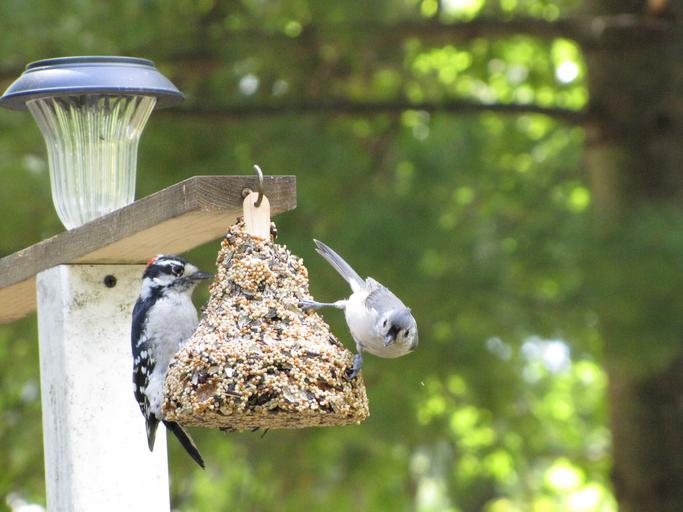Keywords: michigan birds michiganbirds michigan bird feeder texture creative commons creativecommons downy woodpecker downywoodpecker titmouse bird feeder outdoor animal depth of field